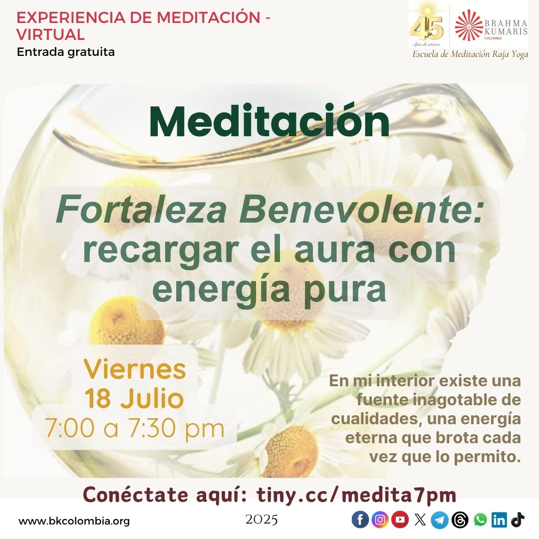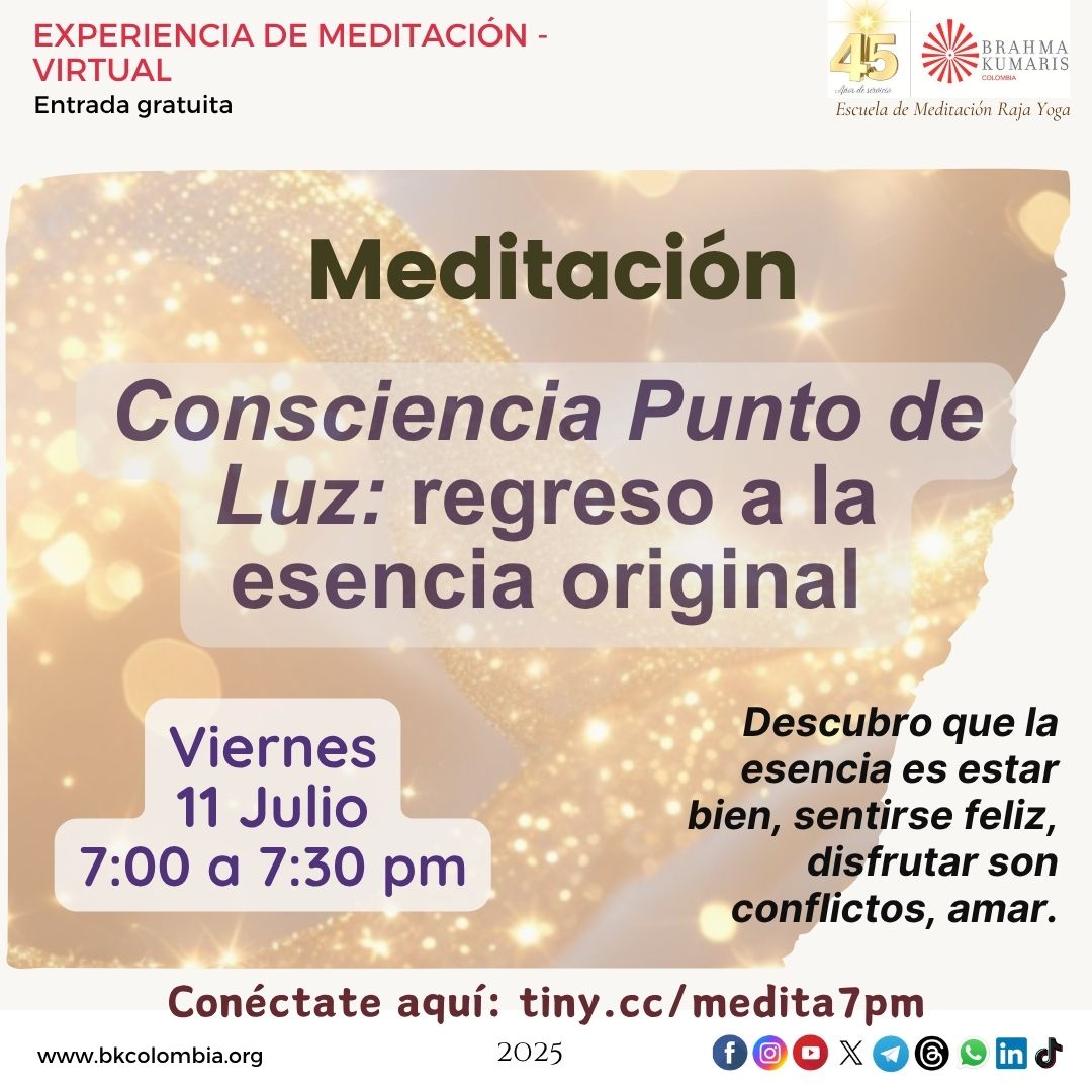 | Meditación virtual 7:00 a 7:30 http://tiny.cc/medita7pm |