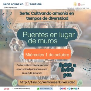 1 miércoles 8:00 a 9:00 pm ONLINE Serie Armonía en tiempos de diferencia 1- Puentes en lugar de muros LINK: http://tiny.cc/ArmoniaenDiversidad |