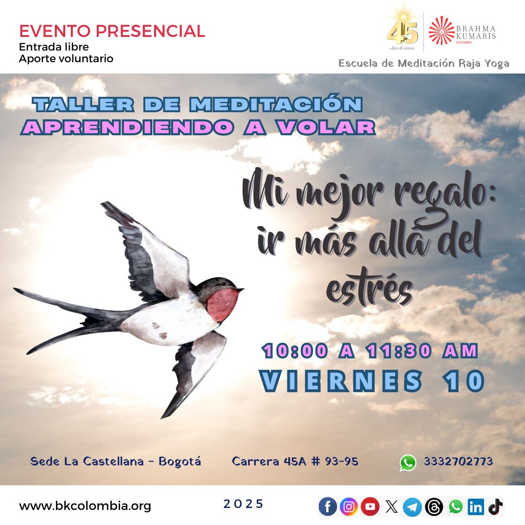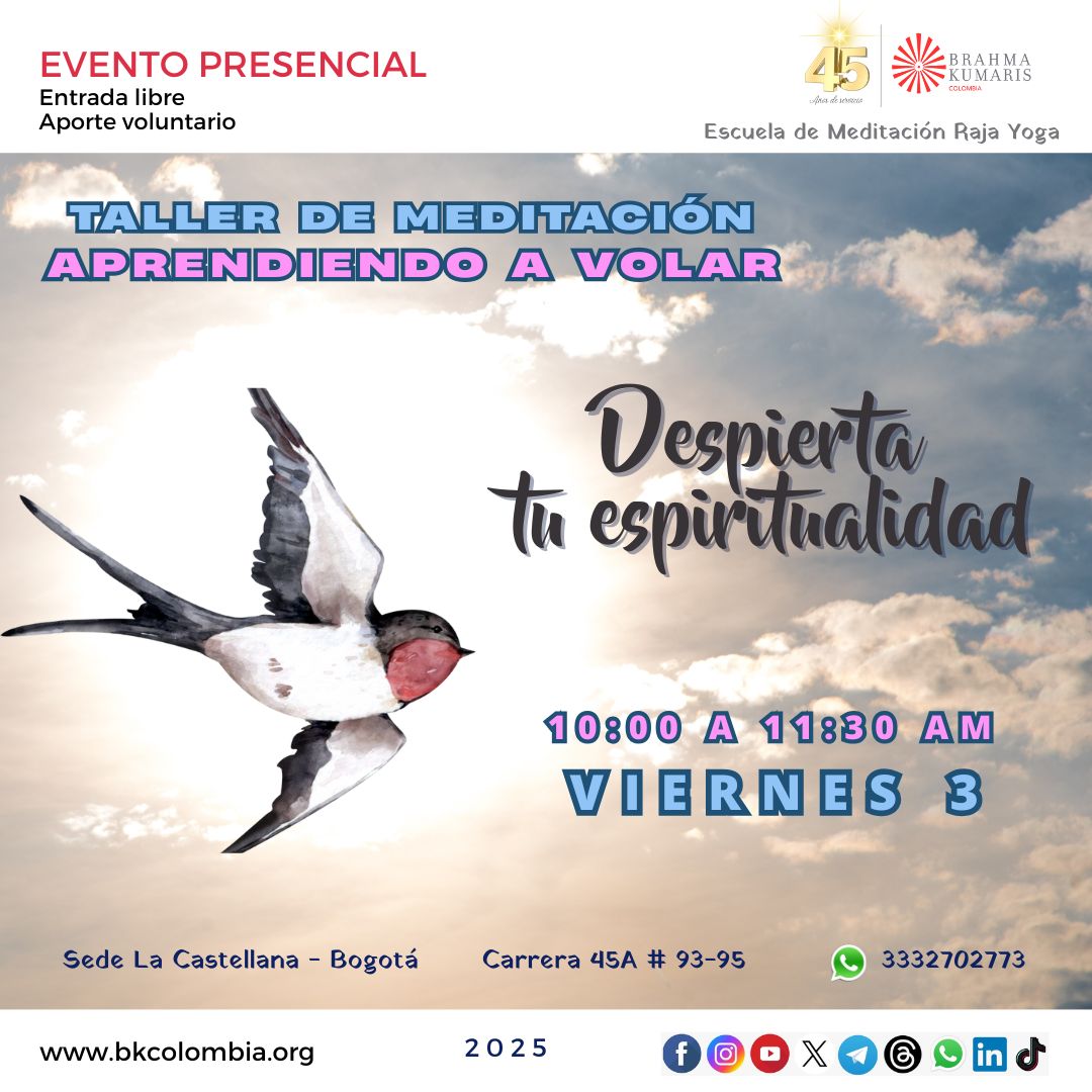 3 viernes 10:00 a 11:30 am Taller de meditación Aprendiendo a volar: Despierta tu espiritualidad |