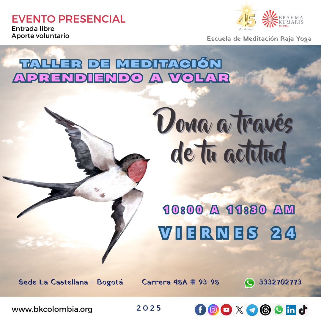 24 viernes 10:00 a 11:30 am Taller de meditación Aprendiendo a volar: Dona a través de tu actitud |