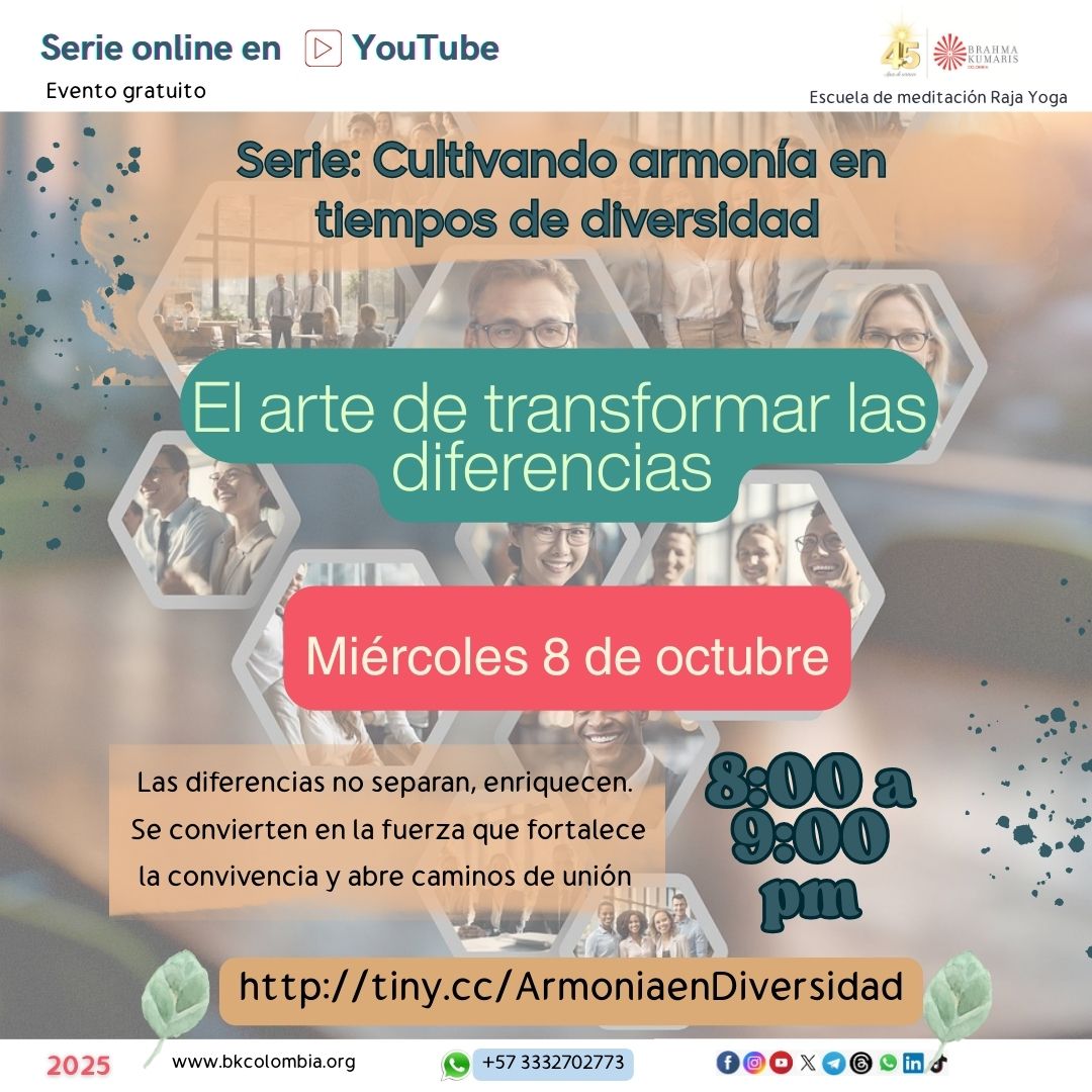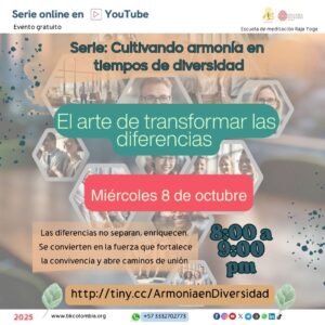 8 miércoles 8:00 a 9:00 pm ONLINE Serie Armonía en tiempos de diferencia 2- El arte de transformar las diferencias LINK: http://tiny.cc/ArmoniaenDiversidad |