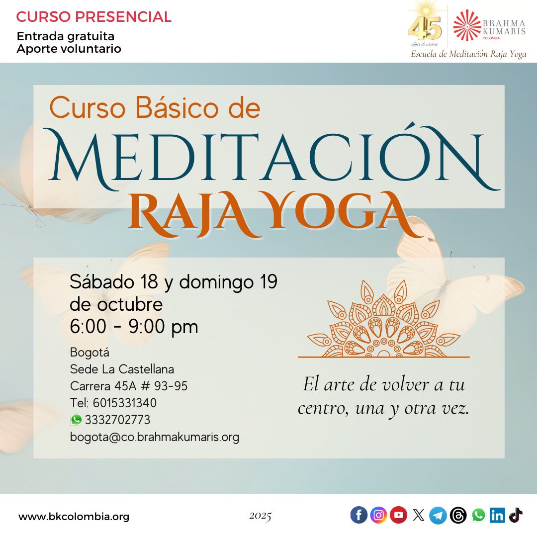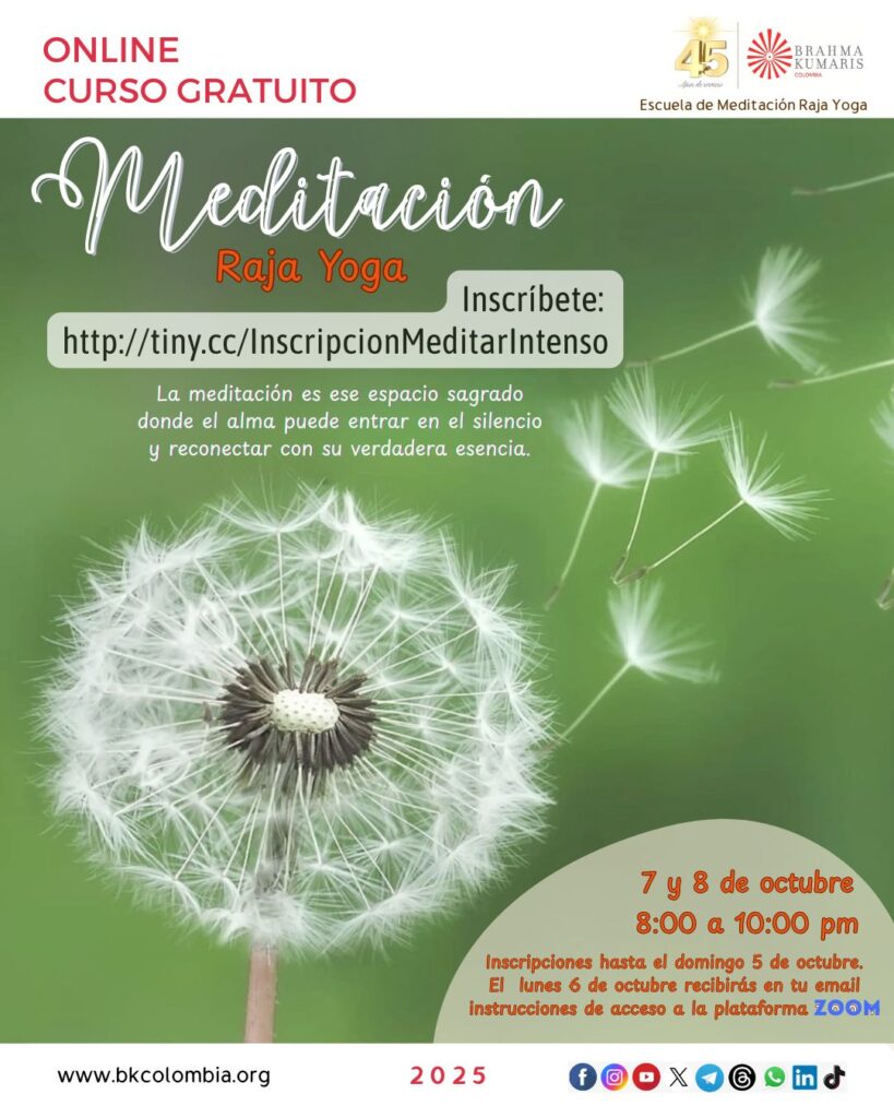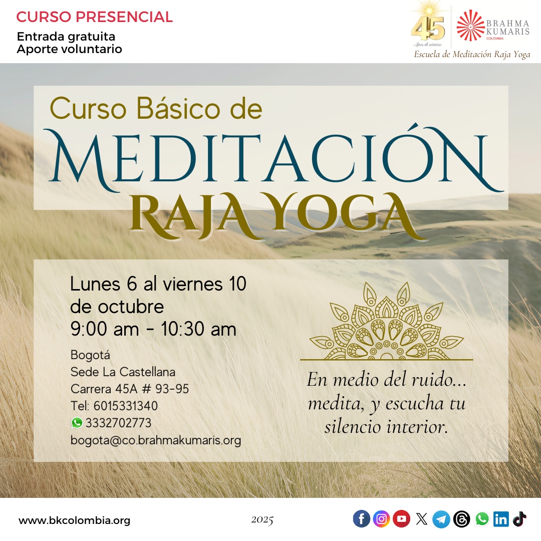 6 lunes a 10 viernes 9:00 a 10:00 am Curso Básico de Meditación Raja Yoga |